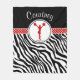 Papel de cebra o manta de escoba en rojo. Una porrista o silueta chica pom posa dentro de un círculo y hay una pancarta de "polka-dot" para el contraste. Añada su propio nombre antes de hacer el pedido. Además, use el botón "personalizar" para más opciones, incluyendo una fuente diferente!