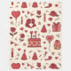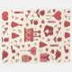 This doodle pattern features a variety of hand-drawn elements in a warm palette of reds and soft pinks, including: