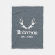 Cañones de venado gris personalizado vintage huelen la manta. Domicilio personalizado: manta de lana gris y blanca con huesos rústicos de animales. Diseño de moda de país. Elegante diseño de plantilla de texto con año de creación personalizado. Est. Establecido en 2015 2016 2017 etc. Hermosa tipografía de aspecto afligido desvanecido para su apellido o monograma. Color del fondo del personalizable. Haz tu propio confort con el apellido. Cubierta de personalizado dulce favorece la idea de regalo para boda con temática de cazador, ducha de novia, compromiso, aniversario, ducha de bebé, limpieza, fiesta de cumpleaños, reunión familiar, barbacoa, etc. Elegante decoración de casa con tema de caza al aire libre gris azul para sofá, sofá o cama en el dormitorio. Crea tu propia pareja casada, recién casados, marido y mujer, novia y novio, nuez, novios, novios, él y ella, mr y mrs, abuelos, etc.