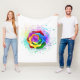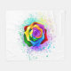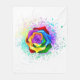 Rosa grande y floreciente con pétalos de arco iris sobre fondo blanco, pintado con salpicaduras de pintura colorida y brillante. 3.ª
