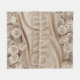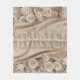 ROSA barnizado de TINO Una representación 3D de una acogedora manta beige con un delgado borde blanco. La manta está decorada con rosas blancas vibrantes y en el centro se puede leer el nombre de TINO, bordado en negrita. Cada letra está envuelta en una cinta blanca, añadiendo un toque de elegancia. La manta es perfecta para añadir un toque de lujo y personalización a cualquier habitación.