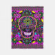 Un cráneo del azúcar en colores rosados de neón y un fondo de la flor.
