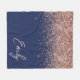 Manta Polar Rosa Dorado Glitter Monograma Azul Marino