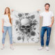 Una oscura y romántica maraña floral de rosas góticos y espinas agudas enredadas detrás de un cráneo macabro que mira al espectador en un silencio mórbido.