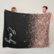 Negro y dorado rosa - Manta de felpa con monograma de nombre e inicial con brillo rosa delicado. Esto hace que sea el regalo perfecto para cumpleaños de 16, boda, despedida de soltera, aniversario, baby shower o fiesta de soltera para alguien que ama el lujo y los estilos chic glamorosos.