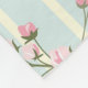 Hermosas rosas rosadas sobre una manta de felpa de fondo a rayas azules y blancas.