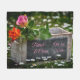 Rústicos Rosas de Naranja y rosa en una caja de madera sentados en un campo de margaritas Usar el lado de la pizarra para nombres y fechas personalizares, etc.