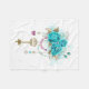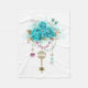 Llave de oro antiguo con rosas turquesa de moda decorados con hojas de oro blanco y cuentas rosas y azules. Color de moda. Rosas turquesas. Oro blanco. Tifanía azul.