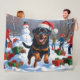 Manta Polar Rottweiler Corriendo en Nieve con Gorra de Navidad