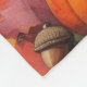 Una pintura acuarela de un perro alegre sentado en medio de un montón de hojas caídas vibrantes, rodeado de pequeñas calabazas y bellotas dispersas. El perro lleva un pequeño gorra peregrino y vigas de alegría, capturando el espíritu del Día de Acción de Gracias. Como telón de fondo, los campos de suave cosecha y los árboles de tonos dorados crean un ambiente campestre tranquilo. Las texturas suaves y los tonos cálidos y mudos del otoño le dan al lugar un ambiente acogedor y nostálgico, perfecto para celebrar la belleza de la temporada.