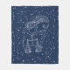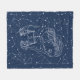 Una fantasía gráfica ilustracion lineal blanco del signo de Libra zodiac sobre un fondo azul marino. El cuadro representa a un chica entre las constelaciones celestes, en su cuello un collar con escamas, en el que un tazón es un corazón, y en el otro -un cráneo.