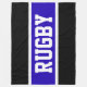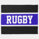 Este diseño deportivo presenta texto deportivo RUGBY dentro de una franja central azul real resaltada en blanco contra franjas exteriores negras. Los colores y el texto de este diseño se pueden personalizar.