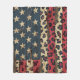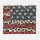 Distressed American flag with bold leopard print overlay on rustic wood texture. Ideal for patriotic women, country style lovers, and those who love bold USA-inspired blanket.