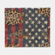 Distressed American flag with bold leopard print overlay on rustic wood texture. Ideal for patriotic women, country style lovers, and those who love bold USA-inspired blanket.