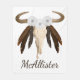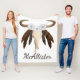 Una frazada rústica de estilo occidental con un cráneo de vaca floral blanqueado por el sol adornado con plumas marrones. También incluye un nombre de familia personalizado en el guión inferior.