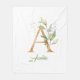 Rústico Una manta de oro de eucalipto de vegetación monogramo personalizada con nombre y un monograma, puede ser utilizada para fiesta de celebración de Novias, Ducha, Baby Shower, Compromiso Boda, Aniversario o Aniversario. Diseño asombroso con hojas de eucalipto verde acuarela tejidas en letra A y chispas de oro fino mezclado y salpicaduras. La vegetación eucalipto deja trenzado elegantemente en letra falsa de Relieve metalizado de oro A y da a la estética en toda la visión. Personalizado con su nombre, el Diseño puede ser utilizado para la ducha de novias, Baby Shower, el compromiso de Bodas, el fiesta de celebración del aniversario o cumpleaños. Contáctame para obtener elementos coincidentes o para personalización, Impresiones violetas ©