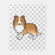 El original ilustracion personalizado de Destei de un lindo color de abrigo escocés Shetland / perro de raza Sheltie. El fondo tiene un patrón de huellas de perros grises.