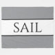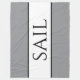 Esta moda, de diseño náutico, presenta un texto deportivo y moderno "SAIL" centrado dentro de una amplia franja blanca central resaltada con delgadas pinstripes negras adosadas a las franjas exteriores grises. Los colores y el texto de este diseño se pueden personalizar.