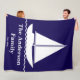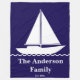 A white sailboat is on a dark blue blanket. Text is below the waves. You can edit the text to show a custom message such as the family's name and the year the family was established.