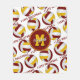 Esta manta de pulpa con temática de voleibol deportivo presenta un patrón espejado de bolas de voleibol con paneles de color blanco, dorado y marrón y el texto deportivo "Me encanta el voleibol" en marrón que se extiende entre las filas de balones de voleibol - el nombre del atleta y el monograma se pueden personalizar en la gran pendiente de círculo - fondo es blanco personalizable - borrar fácilmente el texto "Me encanta el voleibol" líneas, si lo desea, o reemplace el monograma por la letra de variación o el número jersey del jugador, por katz_d_zynes