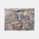 Fotografía de una salamandra de color azul caminando por el suelo húmedo.