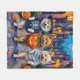 Adorable Samoyeds dressed in playful Halloween costumes carry pumpkin buckets while trick-or-treating under the moonlit sky. This festive design highlights the breed’s fluffy white coat, bright eyes, and signature “Sammy smile,” perfectly capturing the spooky yet joyful atmosphere of Halloween night. A delightful celebration for Samoyed lovers, dog enthusiasts, and Halloween fans alike.