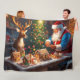 Manta Polar Santa y los renos hacen casa de pan de jengibre