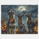 Descanse el espíritu espeluznante con este inquietante diseño de Halloween que presenta una manada de perros bajo un cielo oscuro, iluminado por la luna, rodeados de bates voladores y calabazas brillantes. Perfecto para los amantes de la diversión con sus peludos amigos.