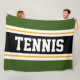 Este diseño deportivo y atlético presenta texto en negrita del TENNIS dentro de una banda negra ancha resaltada con doble franjas de carreras blancas y amarillas contra rayas exteriores verdes del bosque. El texto se puede personalizar.