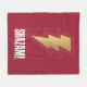 Echa un vistazo a este rayo dorado delineado con el nombre SHAZAM escrito a continuación.