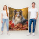 Aproveche el encanto rústico de otoño con nuestra impresionante manta mostrando a un adorable perro pastelero de Shetland en un campo de cosecha mientras el sol se pone en el fondo.