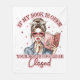 Encantador ilustracion de una mujer con el dedo en los labios sosteniendo un libro abierto. El colorido texto dice: "Si mi libro está abierto, se debe cerrar la boca". Este diseño está disponible en una amplia variedad de productos.