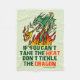 Si usted no puede tomar el calor, no cosquillee el dragón. La parodia divertida del refrán en vez de decir "sale de la cocina". Con las llamas de un fuego del dragón que soplan verde. Diseño chistoso del lema de la diversión.