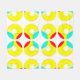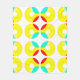 Círculos dentro de círculos, orbas de gentileza Los anillos rotan dentro de los anillos sobre círculos vivos amarillos, acuáticos y rojos sobre un fondo blanco.