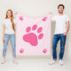 Silueta de pata de perro rosa grande y simple en las siluetas de la pata de perro en medio y pequeño en cada esquina de la manta. El color de fondo es rosa claro.