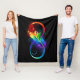 Símbolo de infinito dibujado artísticamente con hermosa pluma arco iris sobre fondo blanco. Estilo tatuaje.