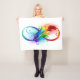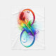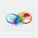 Símbolo de infinito dibujado artísticamente con una hermosa pluma arco iris sobre fondo blanco. Estilo tatuaje.
