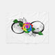 símbolo infinito con rosa arcoiris sobre fondo blanco.
