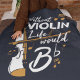 Este lindo dicho es perfecto para un violinista. El mensaje dice "Sin violín, la vida sería plana" en la tipografía moderna, B plana, notas musicales y un violín