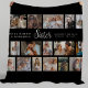 Create a heartfelt tribute with this 18-photo memorial collage blanket, designed In Loving Memory of Sister. This beautiful keepsake features eighteen cherished photos arranged over a sleek black background, creating a timeless and elegant look. Personalize it with your Sister’s name, life dates, and meaningful details to honor her legacy and keep her memory close.