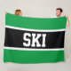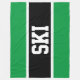 Este diseño deportivo presenta texto de SKI atlético dentro de una banda ancha en el centro negro realzada con rayas blancas contra las rayas de borde exterior de color verde kelly.