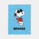 Add a bold pop of color and personality to your space with this Personalized "Joe Cool" Blue Fleece Blanket. Featuring a vibrant design, this cozy throw highlights Snoopy in his iconic "Joe Cool" persona—shades on, red sweater popping—set against a solid, bright blue background, with your name customized in bold black text below.