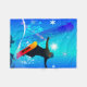 Snowboard, snowboarder con el tablero en fondo azul con los copos de nieve y grunge