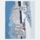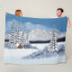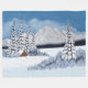 Una manta de lana con una hermosa escena de invierno que incluye montañas nevadas, cabaña rústica y verduras cubiertas de nieve. Obra de arte original de W.B.