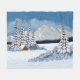 Una manta de lana con una hermosa escena de invierno que incluye montañas nevadas, cabaña rústica y verduras cubiertas de nieve. Obra de arte original de W.B.
