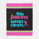Manta del paño grueso y suave del softball del chica con el texto, "esta princesa Wears Cleats" en rosado, azul, y amarillo sobre un fondo oscuro.