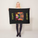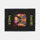 Una manta de lana negra con caras sonrientes y nombre personalizado.