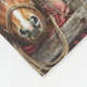 Un caballo marrón está usando un sombrero de paja y una bufanda roja. Está mirando a través de las rieles de la cerca de madera rústica. Gran regalo para Navidad, Cumpleaños, Amante de los caballos.