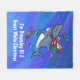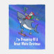 Esta manta divertida es perfecta para las vacaciones. Tiene un gracioso ilustracion personalizado de Santa montando a lo largo de un hermoso cielo nevado en un gran tiburón blanco con sus pequeños compañeros elfos caminando, y dice "Soñando con un gran Navidad blanco". Divertido, lindo y un poco extraño.