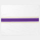 Este moderno diseño deportivo presenta una delgada franja central horizontal violeta realzada con rayas flotantes de carreras marrón dorado contra un fondo blanco brillante y fresco.